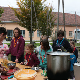 Domov Novice MČ Gamsova kuhna 2025 12. oktober 2025 2025-10-12T18:12:00+01:00 Medvedki in čebelice so 12. oktobra 2025 v Kreativni četrti Barutana ponovno kuhali in pripravljali dobrote. Odlično jim je uspelo!